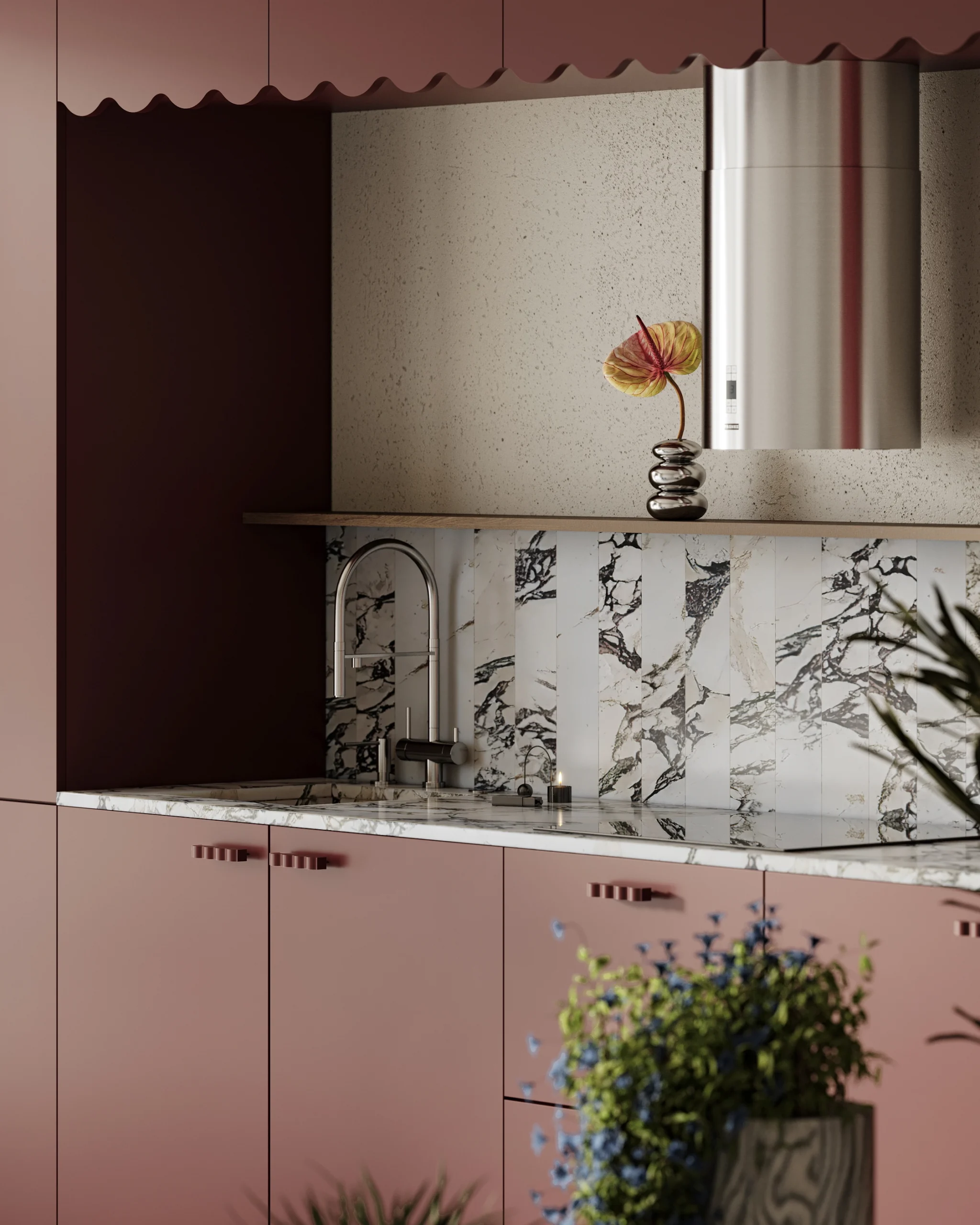 Wave je kuhinja nežnih linija i poznatih osećaja. Nadahnuta svakodnevnim ritualima, uspomenama i tihom elegancijom, ova kolekcija donosi mekoću u prostor — kroz talasaste oblike i boje. Dizajnirana za one koje vezuju kuvanje i bliskost, recepti i emocije, pokret ruke i miris iz detinjstva.